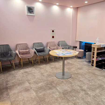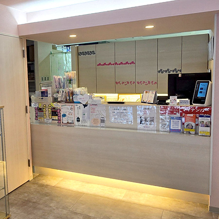 ピンクを基調として落ち着いた清潔感のある待合室にて患者様をお迎え致します。